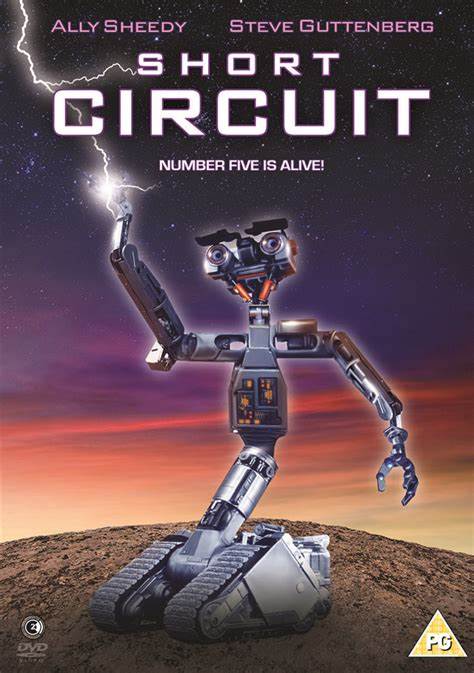 | Number 5 of a group of experimental robots in a lab is electrocuted, suddenly becomes intelligent, and escapes. |